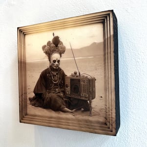 Altered Artificial Intelligence collage/montage, archival color print mounted on foam, epoxy resin 8.5" x 8.5", 2023.