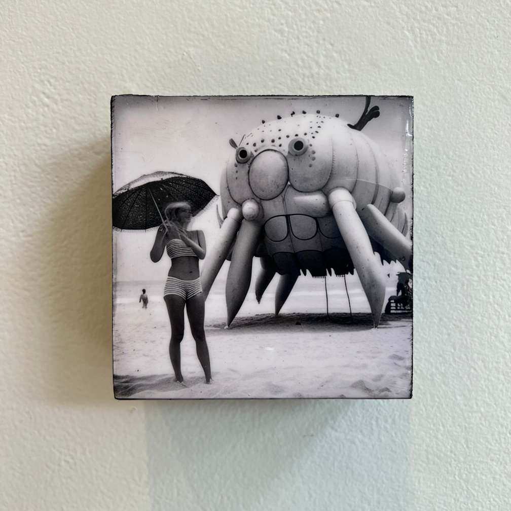Altered Artificial Intelligence collage/montage, archival color print mounted on foam, epoxy resin 5" x 5", 2023.