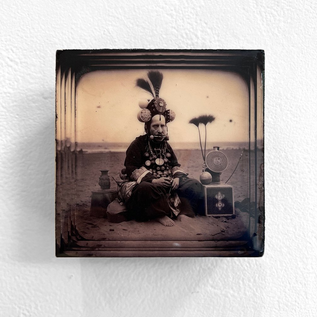 Altered Artificial Intelligence collage/montage, archival color print mounted on foam, epoxy resin 5" x 5", 2023.