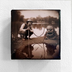 Altered Artificial Intelligence collage/montage, archival color print mounted on foam, epoxy resin 5" x 5", 2023.