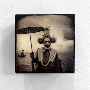 Altered Artificial Intelligence collage/montage, archival color print mounted on foam, epoxy resin 4" x 4", 2023.