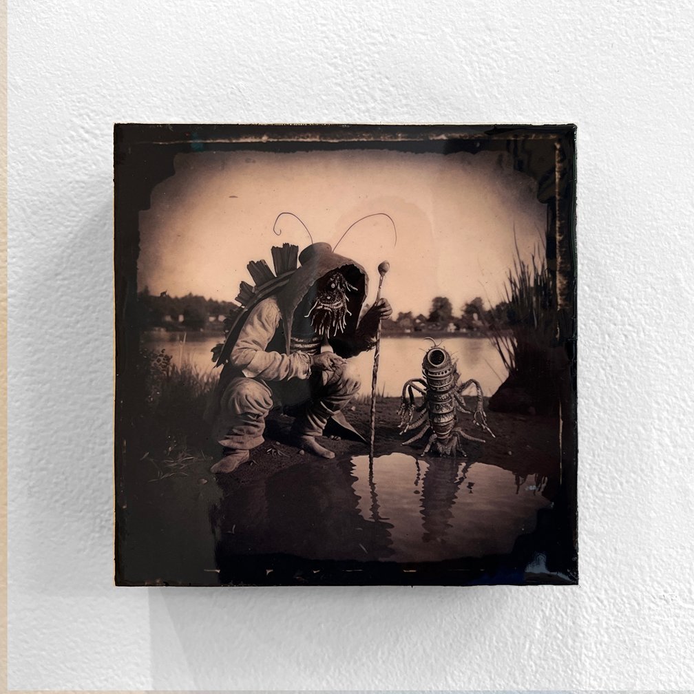Altered Artificial Intelligence collage/montage, archival color print mounted on foam, epoxy resin 7.5" x 7.5", 2023.