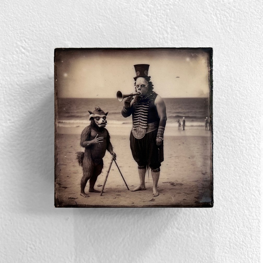 Altered Artificial Intelligence collage/montage, archival color print mounted on foam, epoxy resin 2.75" x 3", 2023.