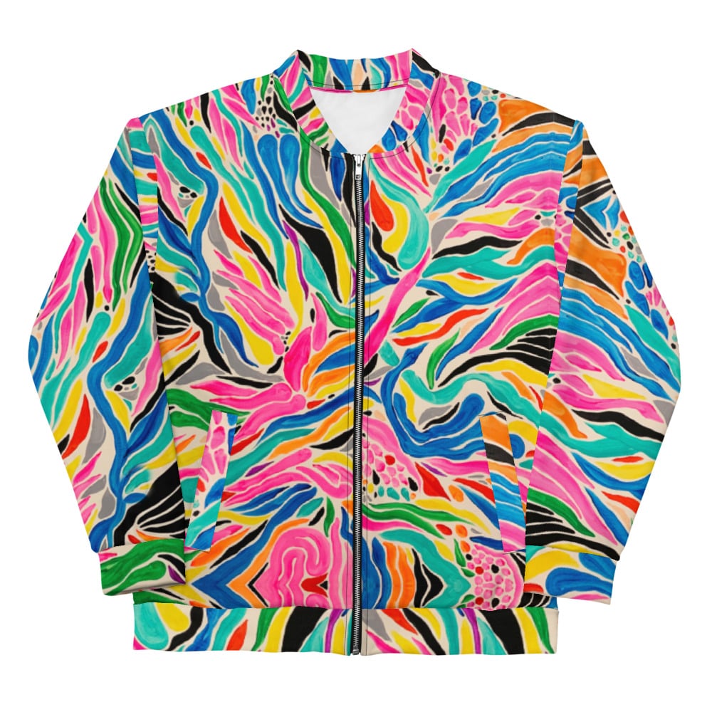 Limited Edition Bomber Jacket. Part of a series of 100 unique designs comprised entirely of original art and photography by Todd Hale. Only 20 prints will be made of each piece in the First Edition (Generation 1). Each Generation 1 piece is numbered on the inside label. Future editions will feature variations and mutations of this original prototype series and will be numbered accordingly. Commissions based on existing designs in the series are encouraged.